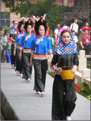 惠安女服饰包括服饰、发型、首饰、佩饰和其它穿戴等,分布在惠安东部海岬区域的崇武、山霞’、净峰、小岞等乡镇,源于百越文化,又融汇了中原文化和海洋文化的精华,经过一千多年的异化和传承而顽强地保留下来。惠安女服饰的整体样式定型于唐朝,至宋代渐趋成熟,明末清初以后,有了比较明显的变化即形成了款式奇异、装饰独特、色彩协调、纹饰艳丽的基本特征。